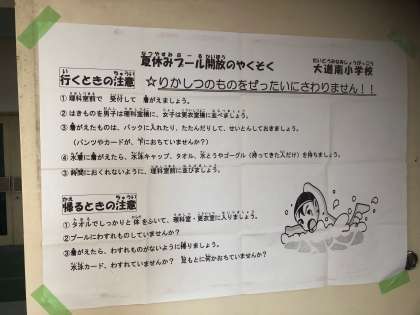 今日からプール開放が始まりました。朝は雨が降っていましたが、子どもたちが入るころには、すっかりやんでらプール日和になりました。出席した子どもたちは少なめでしたが、とても気持ちよさそうに泳いでいました。自由時間が多いので、友だちとしっかり楽しみながら入れるのが、プール開放の醍醐味ですね。