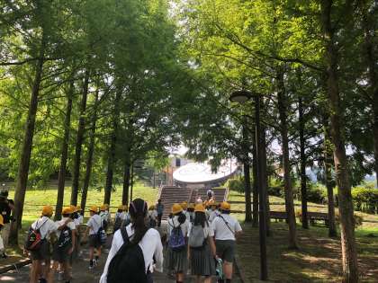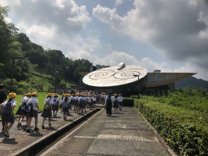 予定通り、バスはテラドームに着きました。今から、プラネタリウムや天体観測をします。