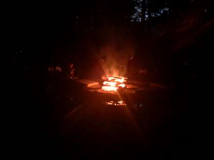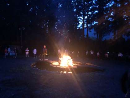 キャンプファイヤーもプログラムがどんどん進んで、最後は「ビリーブ」を歌って終わりました。最初は少し明るかったですが、どんどん日が暮れて、真っ暗になってきました。