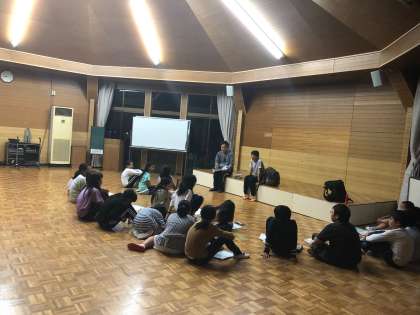 活動班のリーダーと生活班のリーダーが集まって、2日目の班長会議をしました。昨日より今日は、よくがんばった班が多くて、とても成長を感じました。