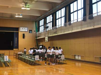 講堂に夏休みの子どもたちの作品が並びました。力作がずらりと並んでいます。今日の4時間目から保護者の方も鑑賞していただくことができます。お楽しみに!