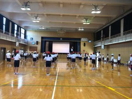 6年生は太鼓を持って踊ります。まず基本の動きを練習していました。