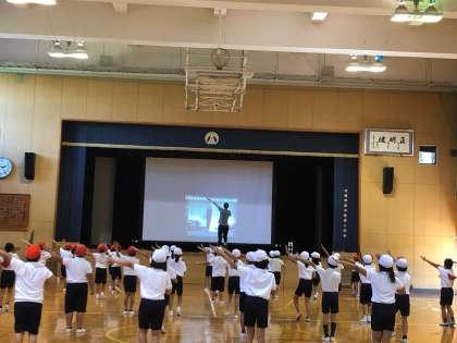 3年生は、講堂でテンポのいい曲に合わせていっせいにそろって踊っていました。なかなか難しい振り付けですが、指先までピンと伸びていて、かっこよかったです。
