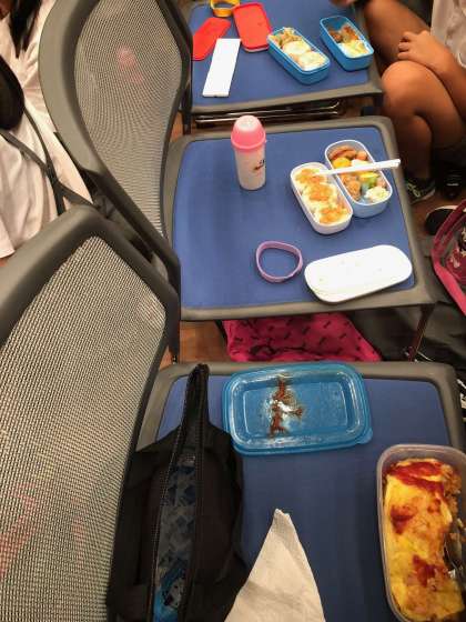 外は雨なので、美術館のご厚意で室内でお弁当をいただきました。みんなでおいしくいただきました。