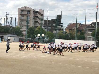 運動場から元気な声が聞こえてきます。4年生の団体競技「棒引き」の練習の声です。一瞬で勝負が決まってしまうグループやぎりぎりまで粘ってがんばるグループ、終わったところはほかのグループへの応援でにぎやかです。当日が楽しみです。