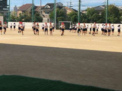 4年生が運動場でダンスを確認しています。「アラジン」の音楽に合わせてコミカルな動きもあって、みんな楽しそうです。当日をお楽しみに。
