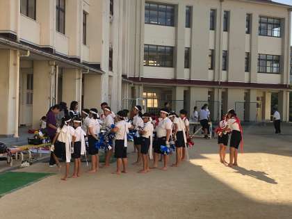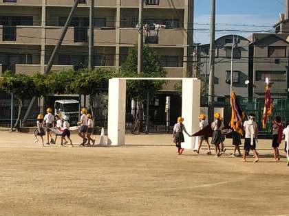 今日の放課後は、開会式で最初に入場する児童会の代表の人たちの入場と応援団の練習がありました。みんながんばっています。