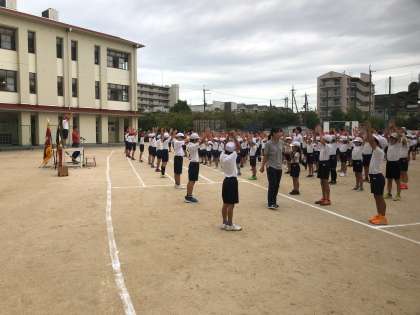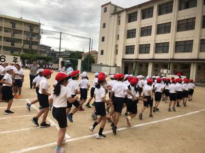 朝から運動会の全体練習を行いました。当日と同じ流れで、入場行進や宣誓、運動会の歌、ラジオ体操などをしました。1年生にとっては初めての練習ですが、しっかりと行進するなどとてもがんばっていました。