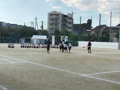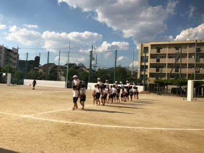6年生が騎馬戦の練習をしていました。いよいよ運動会が迫ってきて、勝負にも力が入ります。