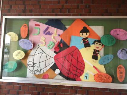 玄関掲示に「うんどうかい」の文字が入って完成です。絵は少し立体感を出して貼っています。