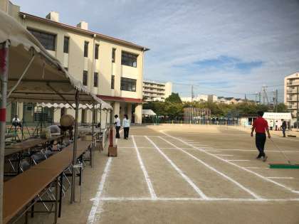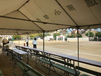 朝からいいお天気で、絶好の運動会日和になりました。週間天気予報では雨マークがずっとついていて、心配しましたが、いい天気になってよかったです。そろそろ保護者の方々も並び始めています。