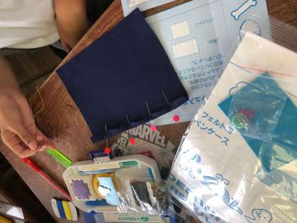 家庭科で5年生はフエルトで小物を作っています。針と糸で縫うことには慣れてきていますが、自分で作りたいものを作るのはなかなか難しそうです。出来上がりが楽しみです。
