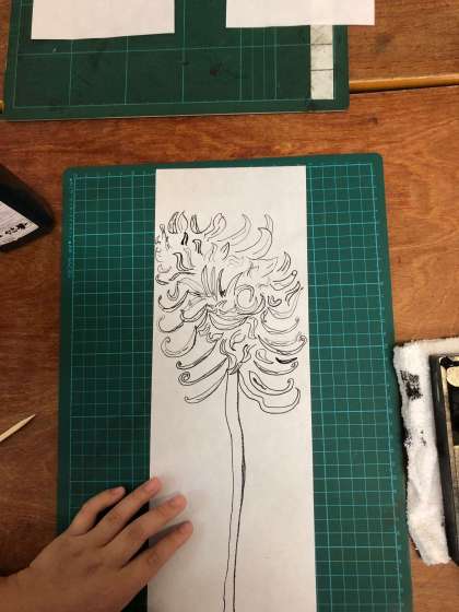 墨汁を用いて、彼岸花を描いています。すごく特徴を捉えています!