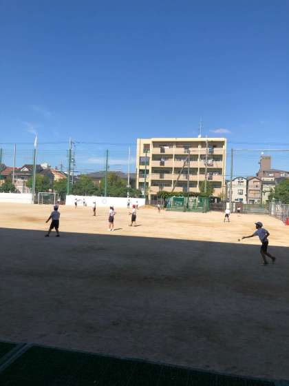 体育の授業で、ますばキャッチボール。そして、ゴロで投げたりフライにしたりを繰り返して練習しています!