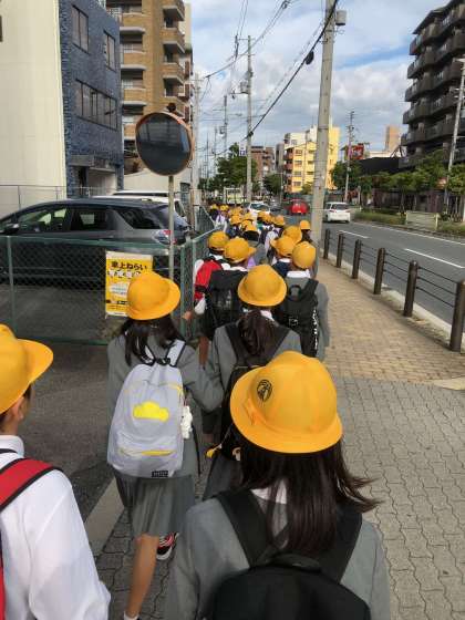 たくさん歩いて、上新庄駅に向かってます!なかなか長い距離。遠足の始まりです。