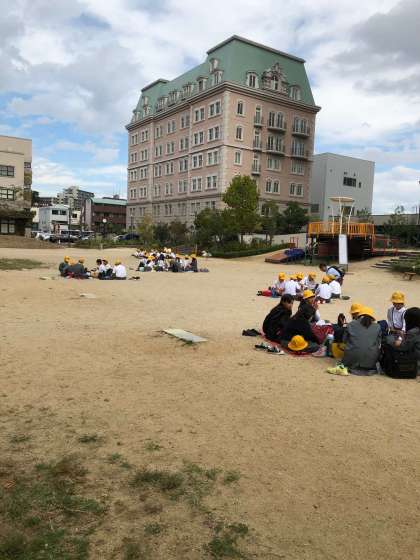 雨も降らず、適度な気温です。広い公園でお弁当の時間です。