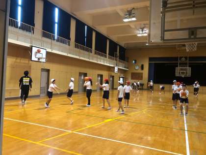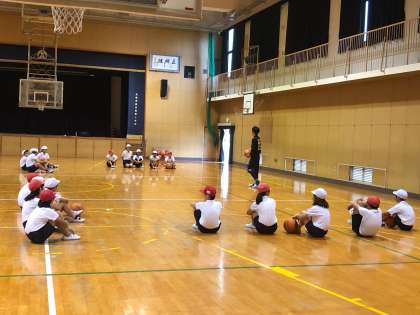 6年生は、大阪エベッサのコーチの方に来ていただいてバスケットボールを教えていただきました。グループで普段の練習と違い、専門的な練習の仕方などをアドバイスしていただきました。子どもたちは緊張しながらも、ダンクシュートを目の前で見て目を丸くしていました。