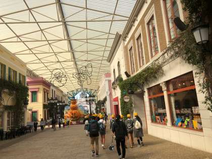 6年生は、スペイン村に到着しました。すぐにパエリア作りの会場のレストランに向かいます。