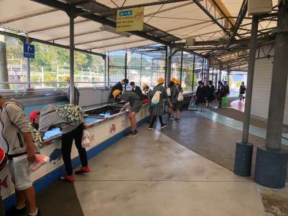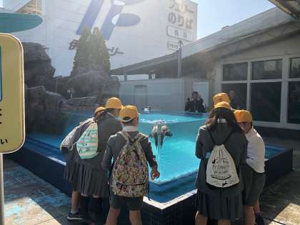 鳥羽水族館での見学中です。大きなセイウチやかわいいペンギンを間近に見て、びっくりしました。