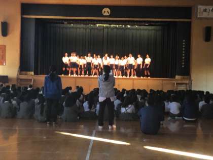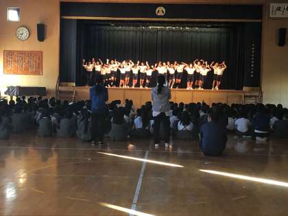 今朝の児童集会は、ダンスクラブの発表でした。クラブ活動は限られた時間ですが、よく練習して、発表できていました。ダンスはみんなの心を一つにして踊ることが大事です。4・5・6年生が一つのチームとしてがんばっているのがよくわかりました。