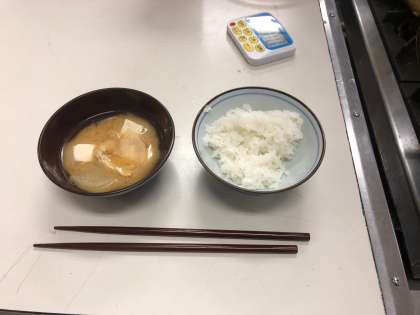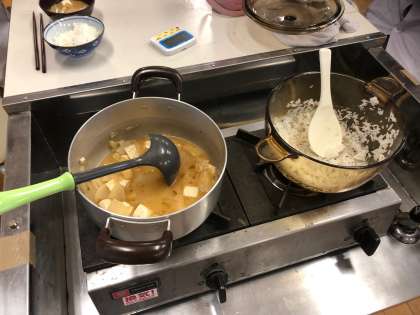 今日は、隣の学級の調理実習でした。とても手際よくできたので、2時間目にはもう試食していました。味付けもちょうどよく、ご飯は少しおこげができていておいしかったです。
