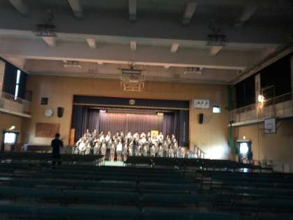 5年生が学習発表会の練習をしていました。全員の合唱で、元気な歌声が響いていました。