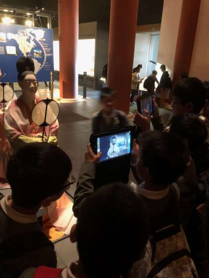 タブレットを用いて記録に残しています。持ち帰って学習に使います。メモをとる姿も真剣です。