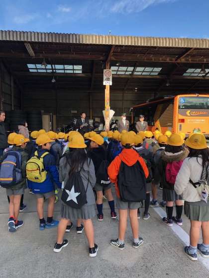 2年生は守口車庫の見学に行きました。豊里大橋を渡るときは、少し寒かったですが、守口車庫に着いて、子どもたちの目は輝いていました。丁寧な説明を受けて、実際にバスに乗ったり、事務所での仕事について知ったりして、大変勉強になりました。