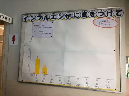 保健室の掲示 公開日 2019/12/11 更新日 2019/12/11 お知らせ 保健室の前には、かぜやインフルエンザにかかった子どもたちの人数をグラフにしています。人数が増えないことを願っています。 いいね(0)
