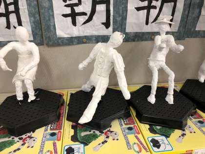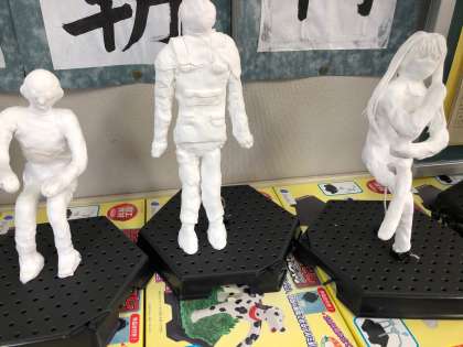 6年生の教室に立体作品が並べられていました。未来の自分を想像していて、動きもよく工夫しています。これから色をつけていくのですが、完成が楽しみです。