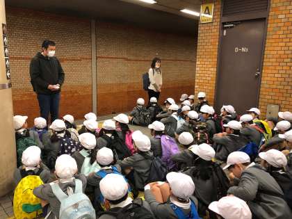 しっかりと見学した後、学校に向かって帰っています。駅のホームでもきちんと整列して、静かに待つことができました。2年生の成長を感じました。