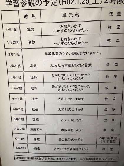 明日は土曜授業です。2時間目に授業を参観していただいたあと、避難訓練、引き渡し訓練を行います。よろしくお願いいたします。