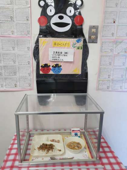 本日の給食は、鶏ごぼうご飯、みそ汁、焼きれんこん、牛乳でした。