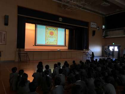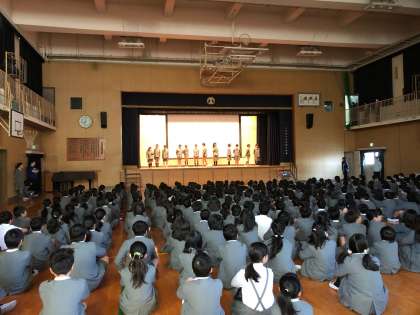 今朝の児童集会では、図書委員会の発表がありました。本の読み聞かせやクイズなどよく工夫されていて見応えがありました。子どもたちからは大きな拍手が。みんなでがんばったことを讃え合うことでまた次にがんばるエネルギーになって、楽しい学校になるのだなと思います。