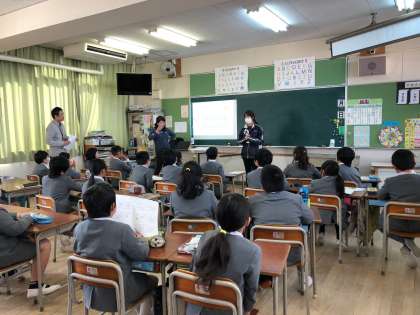 2・3時間目に、3年生ではゲストティーチャーをお招きして、認知症についての学習をしました。認知症キッズサポーター養成講座という名前で、東淀川区キャラバンメイト連絡会の方々が講師です。みんな真剣な表情で聞いていました。「認知症になぜなるの」「認知症を防ぐためにどうしたらいいの」などの質問も出て、たくさんのことを教えていただきました。