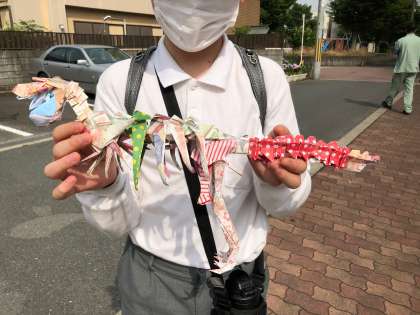 今朝校門で、子どもに折り紙で作ったティラノザウルスを見せてもらいました。なかなかの力作です。