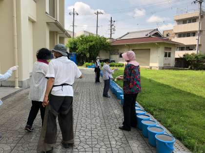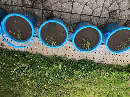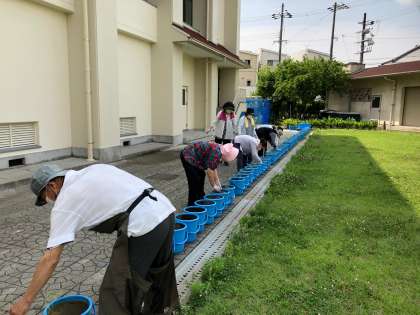 5年生の学習のために、バケツ稲を地域の方々が来られて植えてくださいました。
