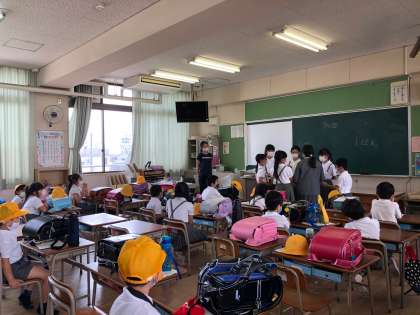 今日初めて地域子ども会を行いました。近所に住んでいても、一年生は初めての顔合わせで、高学年の子どもたちははりきっていました。帰りは間隔を開けてきちんと並んで下校しました。明日からはみんなで安全に登校できそうです。