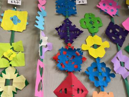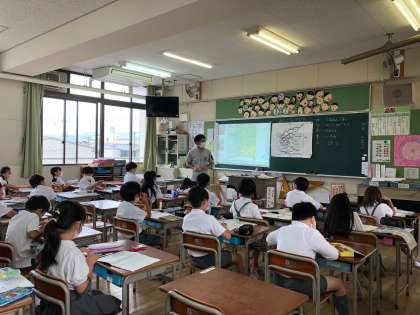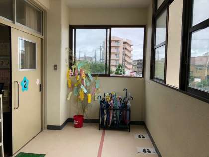 今日は土曜授業です。参観はありませんが、各教室では子どもたちが真剣な表情で学習しています。1年生の教室には七夕の笹が飾られています。