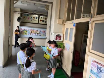 土曜授業の3.4時間目は、2年生が1年生に学校の中の部屋などを紹介しながら回る学校探検をしました。1年生に優しく世話をする2年生に大きな成長を感じました。1年生からは「楽しかった」という感想が聞けました。
