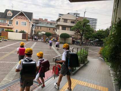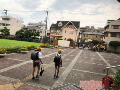 玄関にたくさんの花が咲いています。今日は懇談会3日目。子どもたちが笑顔で帰っていきます。