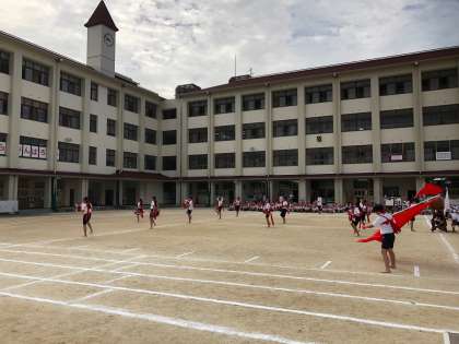 24日朝、2回目の運動会全体練習がありました。まずは応援合戦をしました。今年は応援団の人が前で応援合戦をしている時、見ている子どもたちは、手拍子や腕を挙げるだけのパフォーマンスをします。それなりに盛り上がっていました。応援団の子どもたちの熱意が伝わってきました。閉会式では、今年は校舎の窓に管理作業員さんの手作りの得点板が登場しました。あとは本番を残すのみ。子どもたちのがんばりに応援をよろしくお願いいたします。