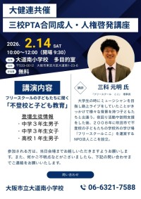 明けましておめでとうございます。本年もどうぞよろしくお願い申しあげます。さて、明日は第3学期の始業式です。3学期は学年のまとめの時期であり、耐寒かけ足やミニマラソン、大道南っ子教室などの行事もたくさんあります。6年生にとっては、卒業遠足など卒業に向けた大事な時期になりました。教職員一同、準備を進めているところです。子どもたちが新たな気持ちでスタートを切ることができますよう、しっかりと見守ってまいります。3学期もどうぞよろしくお願いいたします。