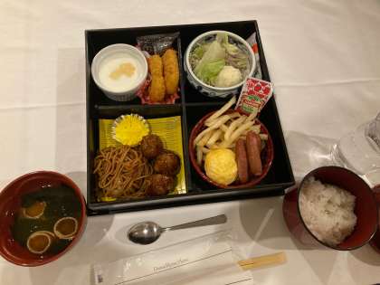 朝食の様子です。このほかにパンやジュースなども付いて、おかわりもできます。子どもたちには食べすぎないように言っています。