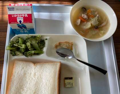 今日の給食の献立は、白身魚のフリッター、洋風煮、ブロッコリーのサラダ、パン、牛乳でした。白身魚はふわふわした衣がついていて、カラッと揚げられていました。洋風煮は、たくさんの野菜が入っていて栄養満点です。ブロッコリーはキャベツやカリフラワーの仲間で、食べているのは主に花の蕾の部分です。ビタミンCがキャベツの3倍以上ふくまれていて、風邪を予防し、肌の調子を整える働きがあります。