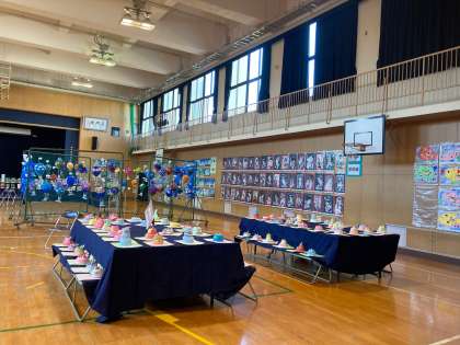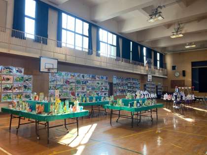 今日から土曜日まで、講堂で作品展を実施しています。各学年の子どもたちの平面作品と立体作品を展示しています。時間は木曜日から金曜日は、8時45分から16時50分、土曜日は、8時45分から12時までです。ぜひご来校いただき、ご鑑賞ください。よろしくお願いいたします。