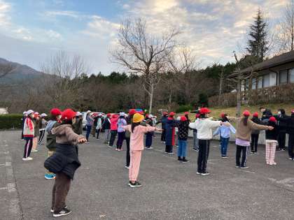 林間学習2日目の朝です。いいお天気で、あまり寒くなく、澄んだ空気をいっぱい吸って、ラジオ体操を元気に行いました。みんな元気です。