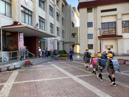 今週は、あいさつ週間です。朝の登校のときに玄関で児童会の運営委員と学級代表の子どもたちが玄関に立ってあいさつしています。