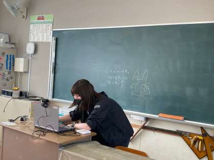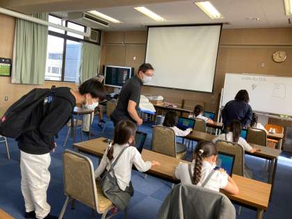 今日は午後4時からTeamsの接続テストをしています。教室の先生から子どもたちにつながるかどうかをテストしています。いきいき教室に参加している子どもたちは多目的室でタブレットを使ってつないでいました。