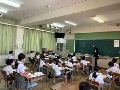今日から若手の先生たちの授業研究が始まりました。トップバッターとして、4月に新任となった先生の3年生の授業が行われました。先生の真剣さが伝わって、子どもたちもしっかりと発表している姿が見られました。
